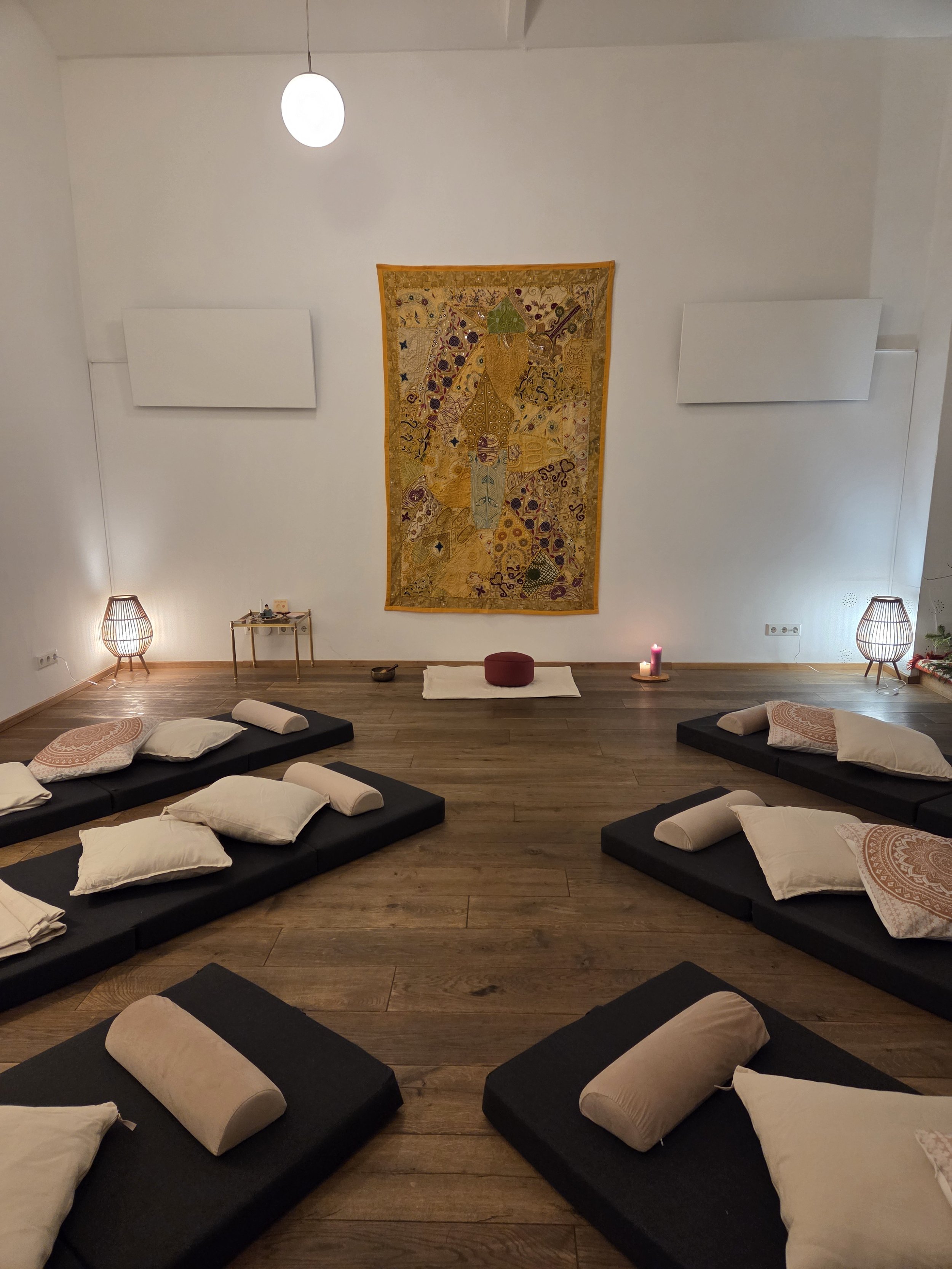 Der Raum lädt dich ein, dich tragen zu lassen – vom Atem, von der Gruppe und vom gemeinsamen Feld.